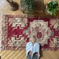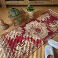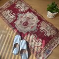 トルコヴィンテージラグ 52.5×112 バラモチーフ メダリオン 艶ある赤