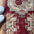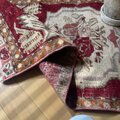 ヴィンテージラグは古い手織物のため使用感や糸のほつれ、補修跡、補強跡、ヨレやシミ、色むら、毛羽立ちなども見られる場合がございます。ヴィンテージラグの魅力としてご理解いただき、良いと思える方にご購入いただけると幸いです。