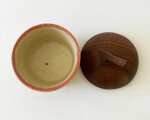 小壺型・銀彩・蓋物なんて可愛らしいフタモノなのでしょう。ひとつひとつ違っていて選ぶのも楽しかったです。 色味もカタチも木と器のコラボも最高なので、ちっちゃいけれどテーブルの主役に大抜てき!(他は何も置かない様にガンバります。) 個包装のあめちゃん10個入りました。 素敵なフタモノに、出会えて良かった! ありがとうございました。