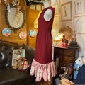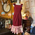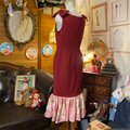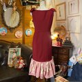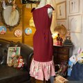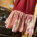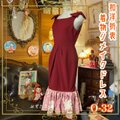 【 和洋折衷 レトロ 古着 着物 ハンドメイド コラージュ リメイク 和 切り替え ワンピース ドレス マーメイド×リボン×赤/レッド×桃色/ピンク×ボタニカル/植物/フラワー/お花柄 O-32 】