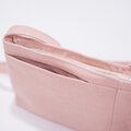 正面からのフォルムが台形ではなく長方形でスッキリ魅せながら、奥行きもしっかりあるので、荷物もしっかり入るポシェットになっています。