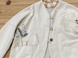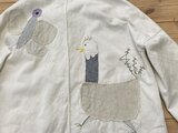 動物や植物のモチーフを自由に縫いつけた「honakana アップリケジャケット」です。