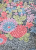 濃紺地にいろいろな花が描かれていて、華やかさもあります。