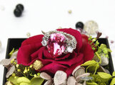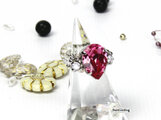特に屈折率の高いスワロフスキーなどに関しましては、光のあたり加減で、色や表情を変える素材もございます。