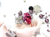 ビーズ,リング,コスチュームジュエリー,ビーズアクセサリー,ビーズリング,キュービックジルコニア,ジルコニア,ローズピンク,スワロ