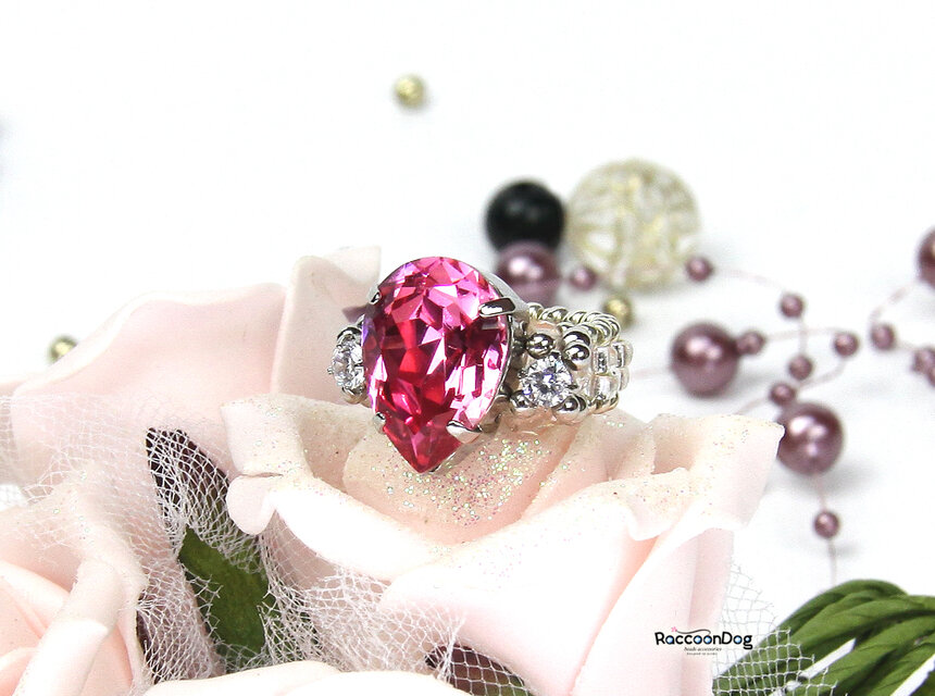 迫力のある大粒のスワロ雫リング。以前アップした際はアップ直後に完売した作品になります。