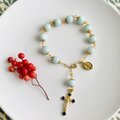 アマゾナイトのビーズと十字架を使用したロザリオブレスレットです