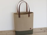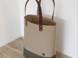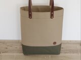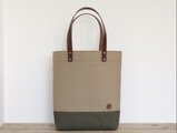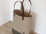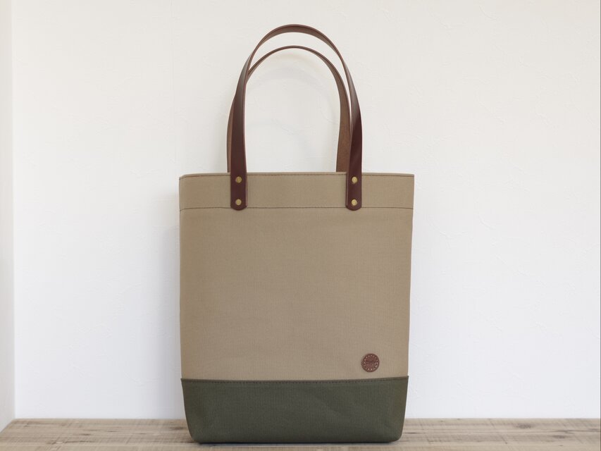 レザーハンドル 帆布 A4 縦長 トートバッグ マッシュルーム×オリーブ