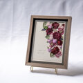 結婚式、前撮り、フォトウェディング、プロポーズ等で使用した後の生花ブーケをお預かりし、オリジナルプレスをして額装いたします。独自の技術で結婚式当日のような生花の美しさを再現し、インテリアとしても褒められるデザイン性の高さが人気です。