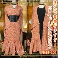 【 和洋折衷 レトロ 古着 洗える 着物 化繊 和 モダン ハンドメイド 2way リメイク ガウン 羽織り ドレス ワンピース 可愛いユニーク和柄×赤/レッド×オレンジ系 KD-13】