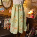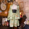 【 和洋折衷 レトロ 古着 洗える着物 2部式 二部式 和 モダン ハンドメイド リメイク セットアップ ツーピース 羽織り スカート 可愛い和柄×パステルグリーン/きみどり系 S-98 】
