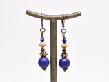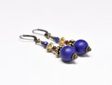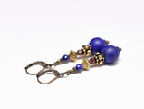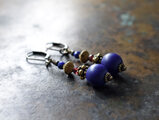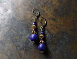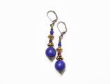 ロイヤルブルードイツヴィンテージビーズとは2種類のブラス、ラピス、ガーネットのピアス