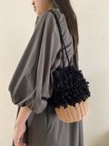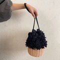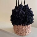 【1点在庫あり】「黒」籐とかぎ針編みのバッグMeggBag poche /かごバッグ