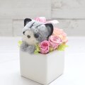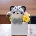 もこもこ可愛い、毛糸の動物とお花のコラボレーション。
