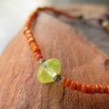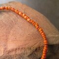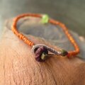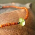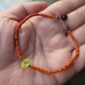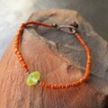 小粒のウランガラスを一粒と、オレンジ色のインドシードビーズをつないだブレスレットです。
