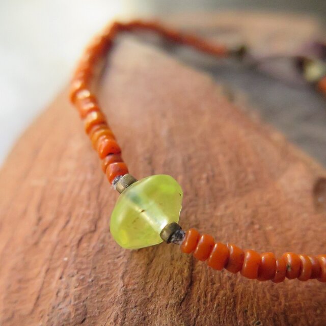 アンティーク ウランガラス + インドシードビーズ オレンジ & オリッサブラス ブレスレ 百世 momotose(東)