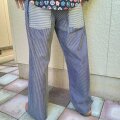 新作手作り岡山児島ヒッコリーデニムパンツ(インディゴブルー×オフ)