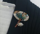 今日ブローチ届き、素敵な色合いにうっとりしました。紫の色が派手すぎず地味すぎずとっても素敵です。プレゼントにしますので喜ばれることと思います。有難うございました。