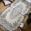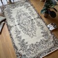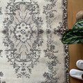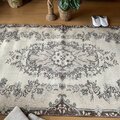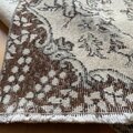 トルコヴィンテージラグ 106×202 クリーム ブラウン 花や実 メダリオン