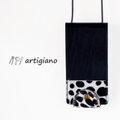 本革スマホショルダー ブラック×ダルメシアン スマホケース iPhone16 iPhone15 ヌメ革 apo-22hh