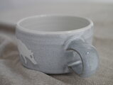 すこしとぼけた表情のオオカミの絵柄のスープカップです。