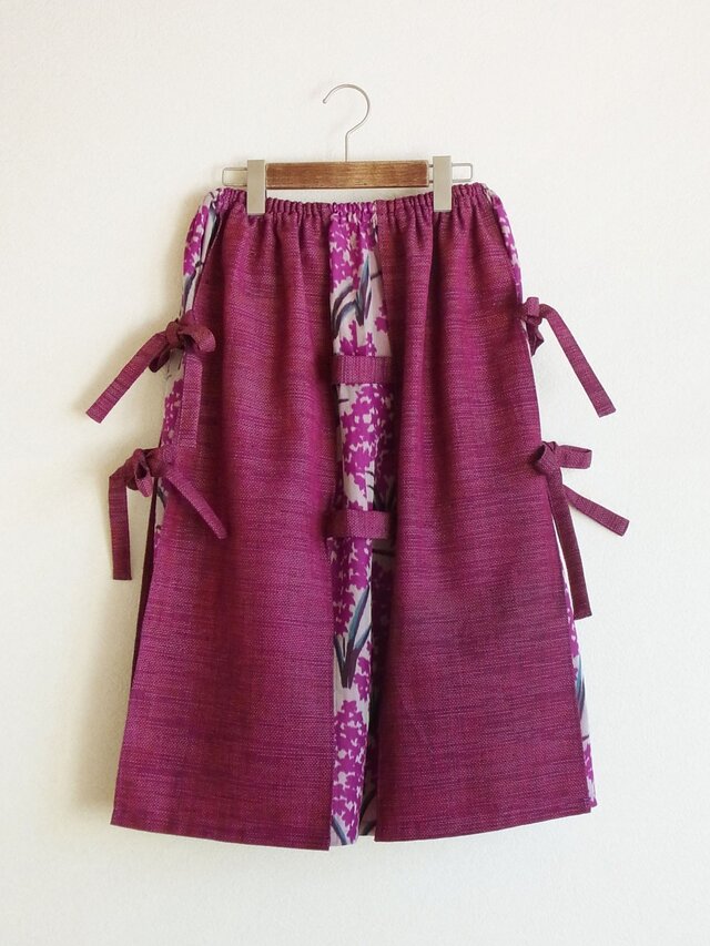 銘仙地のスカートにウール地の暖簾風パネルを重ねたスカートです。