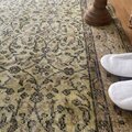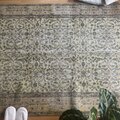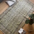 トルコヴィンテージラグ 111×206ブラウンとワサビ色 草花サークル
