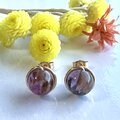 光にかざして眺めたい美しいカコクセナイトインアメジストの1粒ピアス♪