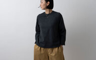 襟ぐりの空き具合や袖口のスリットが、手足や首元のラインを綺麗に見せてくれます。袖口は折り返しても。生地は以前扱っていたタートルネックタイプよりも少し厚みがあり、秋冬に重宝するカットソーです。