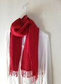 真っ赤なマフラー 手紡ぎ手織り メリノーウール