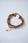 少しずつ色の違う柔らかな雰囲気のブルーメノウと、清々しい水色のガラスビーズのコントラスト。とても繊細で美しいです。 ポイントに配置された真鍮ビーズはほんとうにツボです! とても気に入りました。