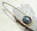 本体全長約75㎜開口幅約11㎜ ピン線径1.2㎜ ラブラドライト約16×13×6㎜厚