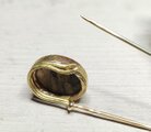 秋冬にアンティークな輝きを添えるラブラドライトのシンプルなアンティーク調ストールピン*安易な接着に頼らず引っかかりの無いマットな覆輪留めを施し生地表に出るフレームはツイストにマット仕上げ、随所に拘ったアンティークな雰囲気をお楽しみ下さい*真鍮は経年変化が早いので黒化遅延処理を施してあります(除光液でコートを拭き取る事で黒化を早める事も出来ます)