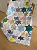 様々な生地を合わせてブランケットが完成しました。全て手縫いです。