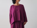 裾が左右下がるデザインで、動作に沿う、ゆったりとしたシルエットになっています。