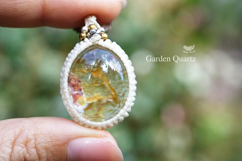 黄金の形★ガーデンクォーツ マクラメネックレス1290