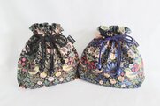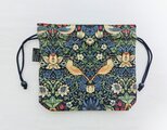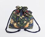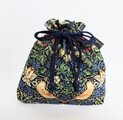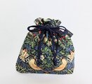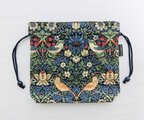 ウイリアム モリスのstrawberry Thief柄(いちご泥棒柄)ネイビー地、神秘的な色合いの綿シーチング生地の巾着袋です。