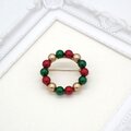 華やかな色合いのクリスマスカラーのパールのサークルブローチです。