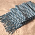 紺碧の千鳥格子マフラー 柔らか素材で暖かく カシミヤ混 手織り