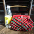入り口はワイヤーが入っていてパカッと開きます。内側の裏地にマグネットボタン、外側には蜂の形のボタンにループを引っかけて閉じます。