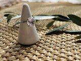 澄んだ水の雫を指先に宿したような、シルバーと水晶のリング。