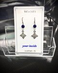 ラピスラズリ約6㎜ アフガニスタン産 コスモオーラ約4㎜ ブラジル産 十字架 クロスチャーム 約13(17)×13㎜ ハンドメイド フックピアス