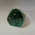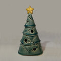 陶製のクリスマスツリーです。白い土に深いグリーンの灰釉を掛けてあります。この中に小さなLEDランプを入れれば穴からの光が楽しむこともできます。 サイズ:高さ20cm、縦10cm、横10cm