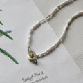 2種類のレインボームーンストーンの美しさ、間に挟み込まれた金色のヴェルメイユ、キラキラと繊細に輝くシルバーの蝋引き糸、そこに編み込まれた小さなパール、どれもとても素敵です。 軽くて着け心地が良いし、長さ調節もできるし、留め具が外れて落とす心配もない。季節を問わず愛用してしまいそうです。 素敵な作品をありがとうございます!
