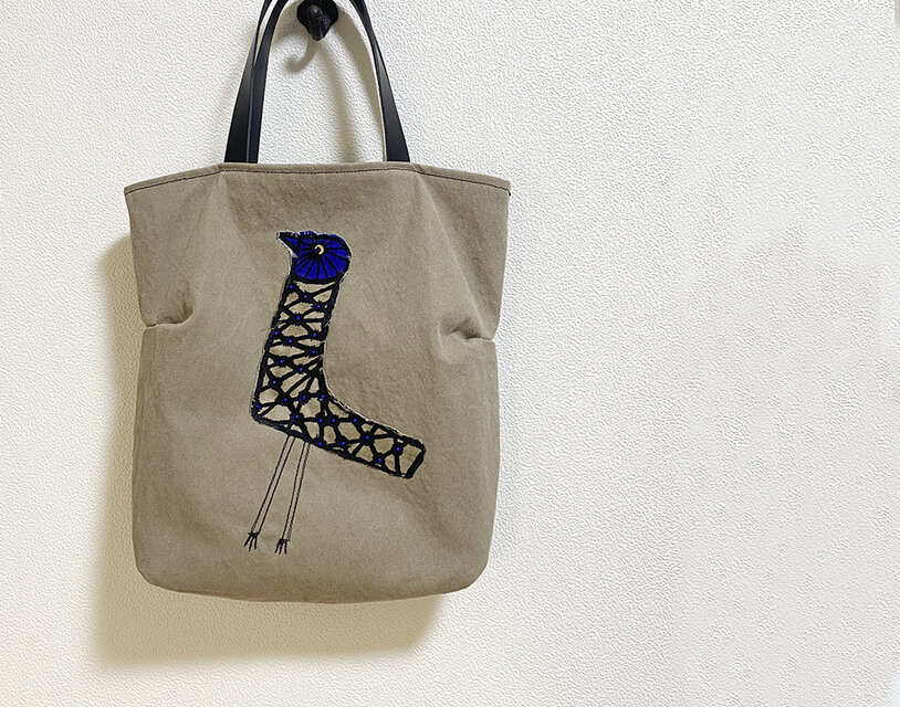 ミナペルホネンの大きな鳥模様(mingling)をバッグ面に