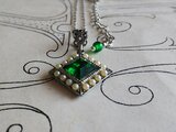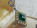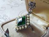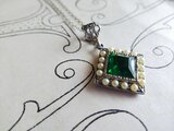 ヴィンテージ Suquareエメラルド/Peral16粒 アンティークSilverネックレス