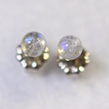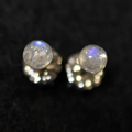 幻想的なブルーシラーを持つ、高品質のレインボームーンストーンカボションをチタンポストでシンプル&プチプライスなスタッドピアスに仕立てました。