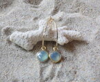とっても綺麗なアクアカルセドニーが揺れるシンプルな槌目のゴールドフープピアスは如何でしょう