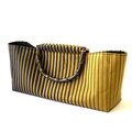 大島紬 縞 黒×からし色 とら バンブーバッグ 和装バッグ 着物バッグ 浴衣 着物 絹 お祭り
