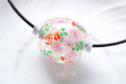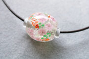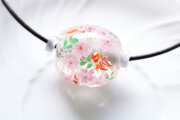 透明の地に泡を入れ、桜を咲かせ金魚を泳がせました。